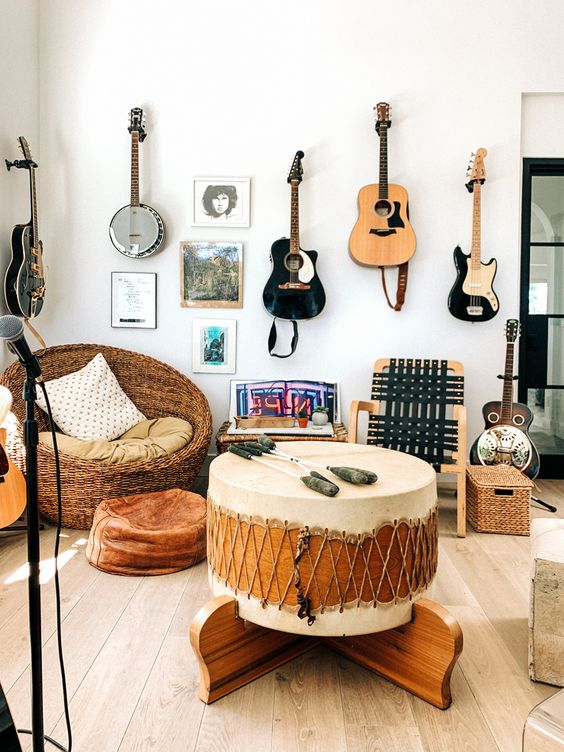 Hãy dành một khoảng không gian cho trẻ em để thể hiện niềm đam mê âm nhạc. Bố trí các loại nhạc cụ như piano nhỏ, bộ trống hoặc guitar. Khuyến khích trẻ em khám phá âm nhạc để tạo ra những giai điệu riêng của mình.