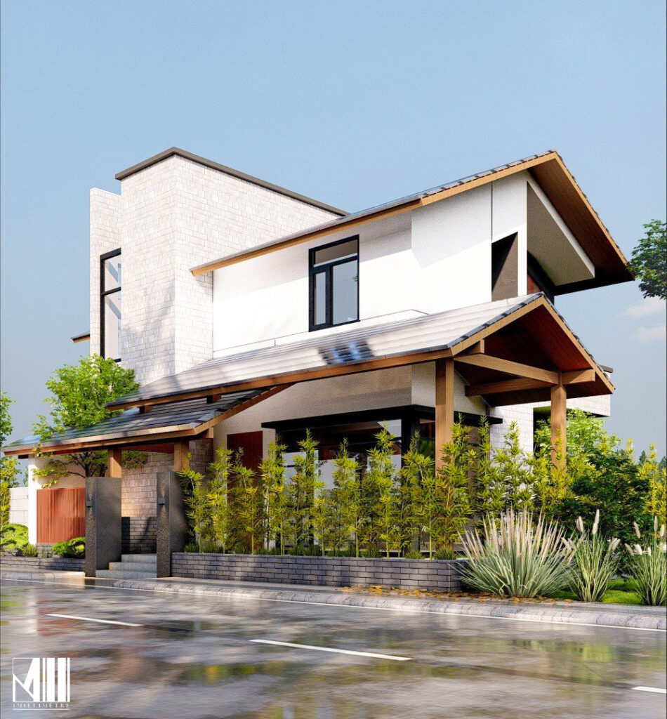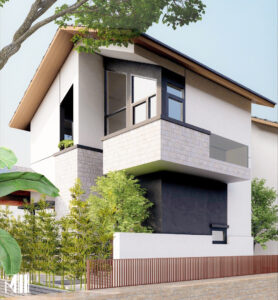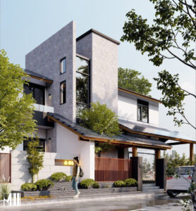 Bằng việc sử dụng các vật liệu mang đậm tính hiện đại như bê tông, kính và gỗ để tạo nên ngoại thất của căn nhà, công ty Kiến Trúc 1mm đã tạo ra những hình khối đơn giản nhưng tinh tế, giúp cho căn nhà có vẻ đẹp ấn tượng ngay từ ánh nhìn đầu tiên.