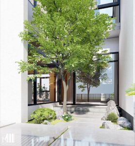 Đặc biệt, mái kính phía trên giúp bảo vệ căn nhà khỏi các yếu tố thời tiết như mưa và nắng, giúp cho gia chủ có thể tận hưởng không gian sống thoải mái dù cho thời tiết có thay đổi như thế nào.