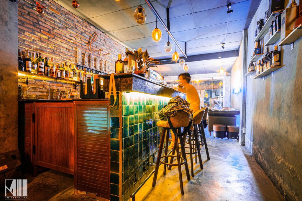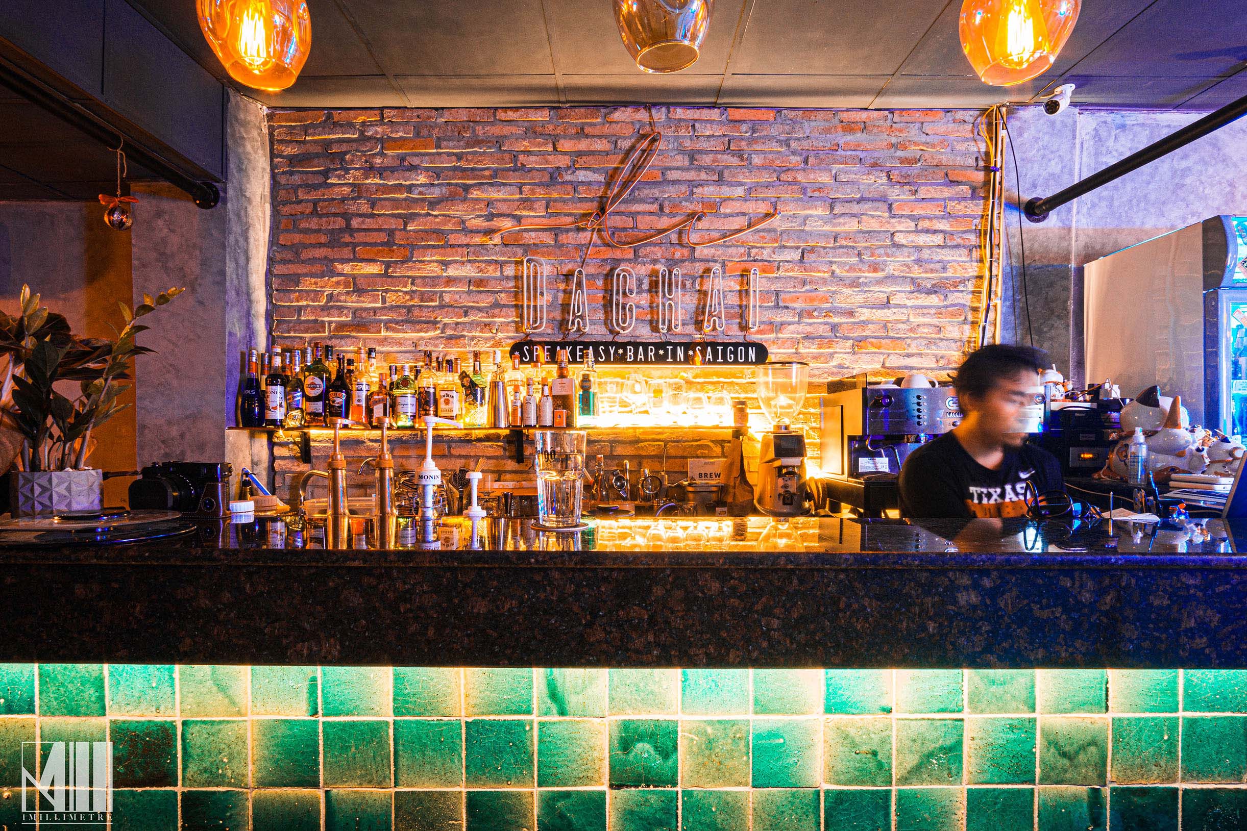 Quầy bar chiếm một diện tích lớn trong không gian tổng thể của quán, với bức tường ốp gạch giả cổ làm nền cho chữ “Đá Chai Speakeasy bar” từ đèn neon. Các khách hàng sẽ được tư vấn cách chế tạo những ly cocktail độc đáo, hoặc đơn giản là thư giãn cùng những ly rượu vang lên men được đóng chai tại chỗ.