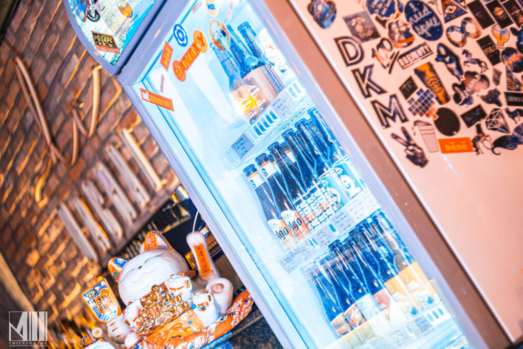 Một bức tường được làm từ những chai bia đã qua sử dụng, với hơn 700 chai được xếp chồng lên nhau tạo thành một vách ngăn giữa không gian thư giãn và nhà vệ sinh. Điều này giúp tạo ra một không gian mang tính hài hòa, kết hợp giữa phong cách hoài cổ và sự hiện đại, rất phù hợp với cái tên Đá Chai Speakeasy bar.