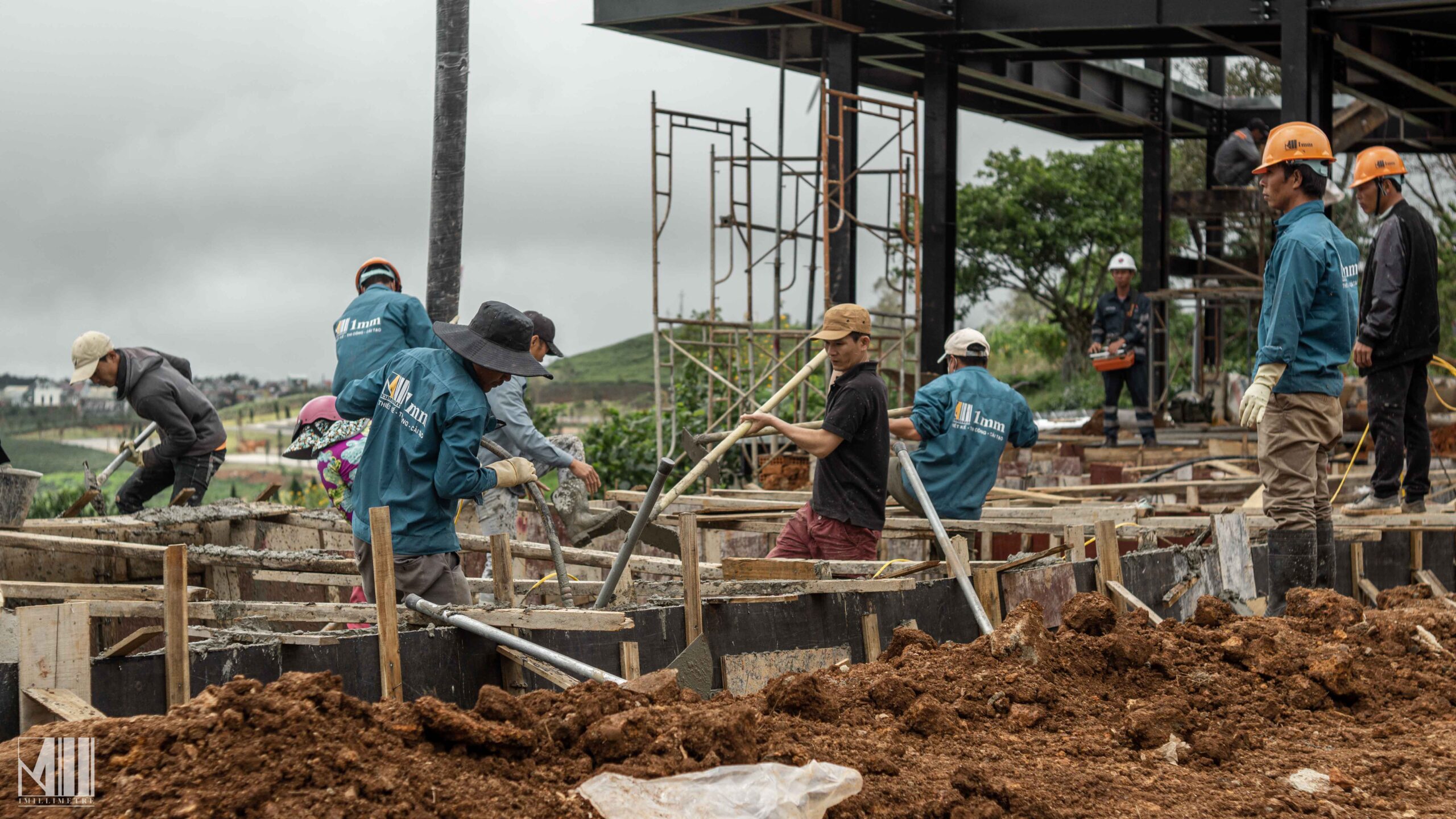 Giai đoạn xây nhà phần thô thường đi kèm với sự lộn xộn không thể tránh khỏi. Từ những bức tường trơ trọi, cọc gỗ ngổn ngang đến những khối bê tông, đây là thời điểm ngôi nhà bắt đầu hình thành. Tuy nhiên, đội ngũ thi công của Kiến Trúc 1mm luôn giữ vững niềm tin rằng sự chính xác và cẩn thận trong giai đoạn này sẽ là nền tảng vững chắc cho các giai đoạn tiếp theo. Họ hiểu rằng mỗi chi tiết trong quá trình xây nhà phần thô, dù nhỏ nhất, đều có ảnh hưởng lớn đến chất lượng và thẩm mỹ của công trình sau này.