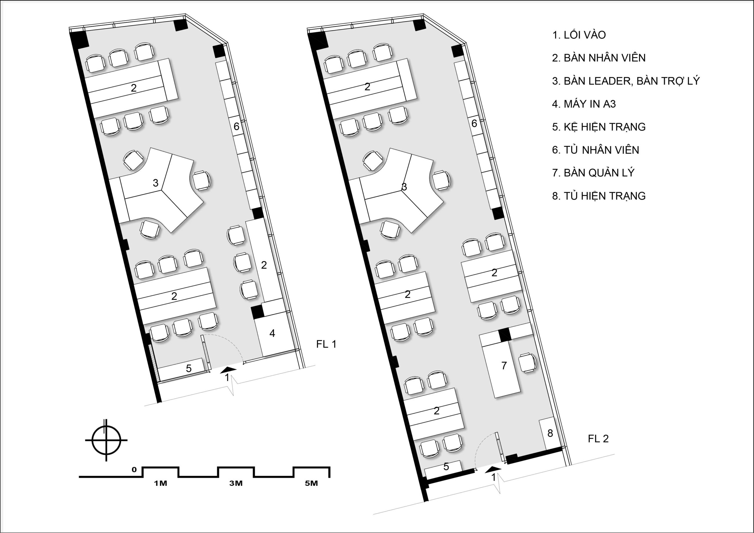 Văn phòng gồm 2 tầng, nằm ngay trong tòa nhà của công ty, với quy mô hơn 40 chỗ ngồi và được chia thành các nhóm nhỏ riêng biệt, đáp ứng theo nhu cầu phân chia nhân sự của công ty.